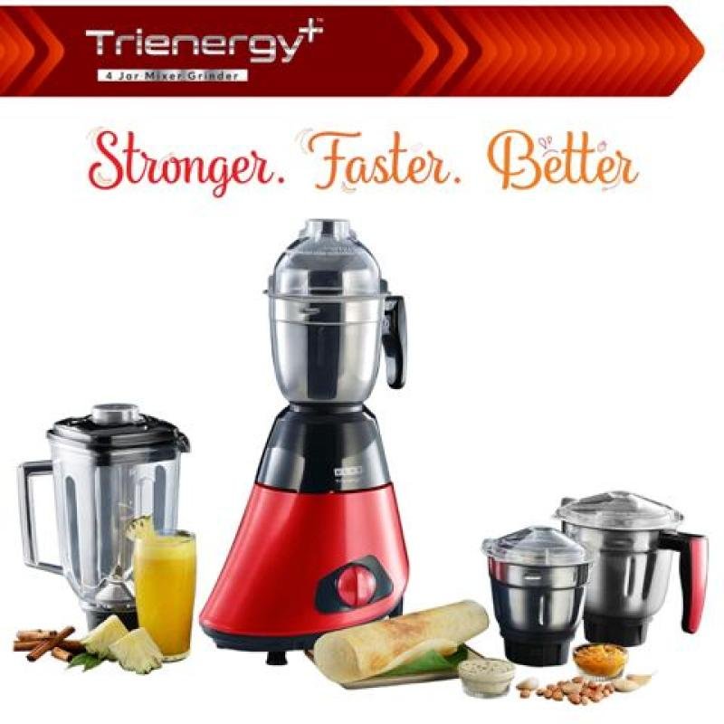 sha Mixer Grinder 800 Watts 4 Jar Trienergy Plus Black & Red | ndia's First Square Shape Quadri Flow Blender Jar 6 Fin Rigid SS Whirling Air Bl
